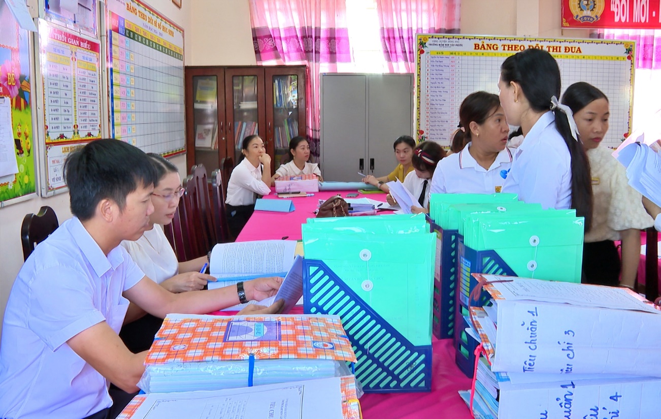Đoàn đã phân công từng thành viên phụ trách kiểm tra, rà soát hồ sơ minh chứng, nội dung các tiêu chuẩn, tiêu chí xây dựng trường đạt chuẩn Quốc gia theo quy định của Bộ GD&ĐT. Phân tích, đánh giá những nội dung trường thực hiện tốt và chỉ ra mốt số thiếu sót cần điều chỉnh, bổ sung cho phù hợp.