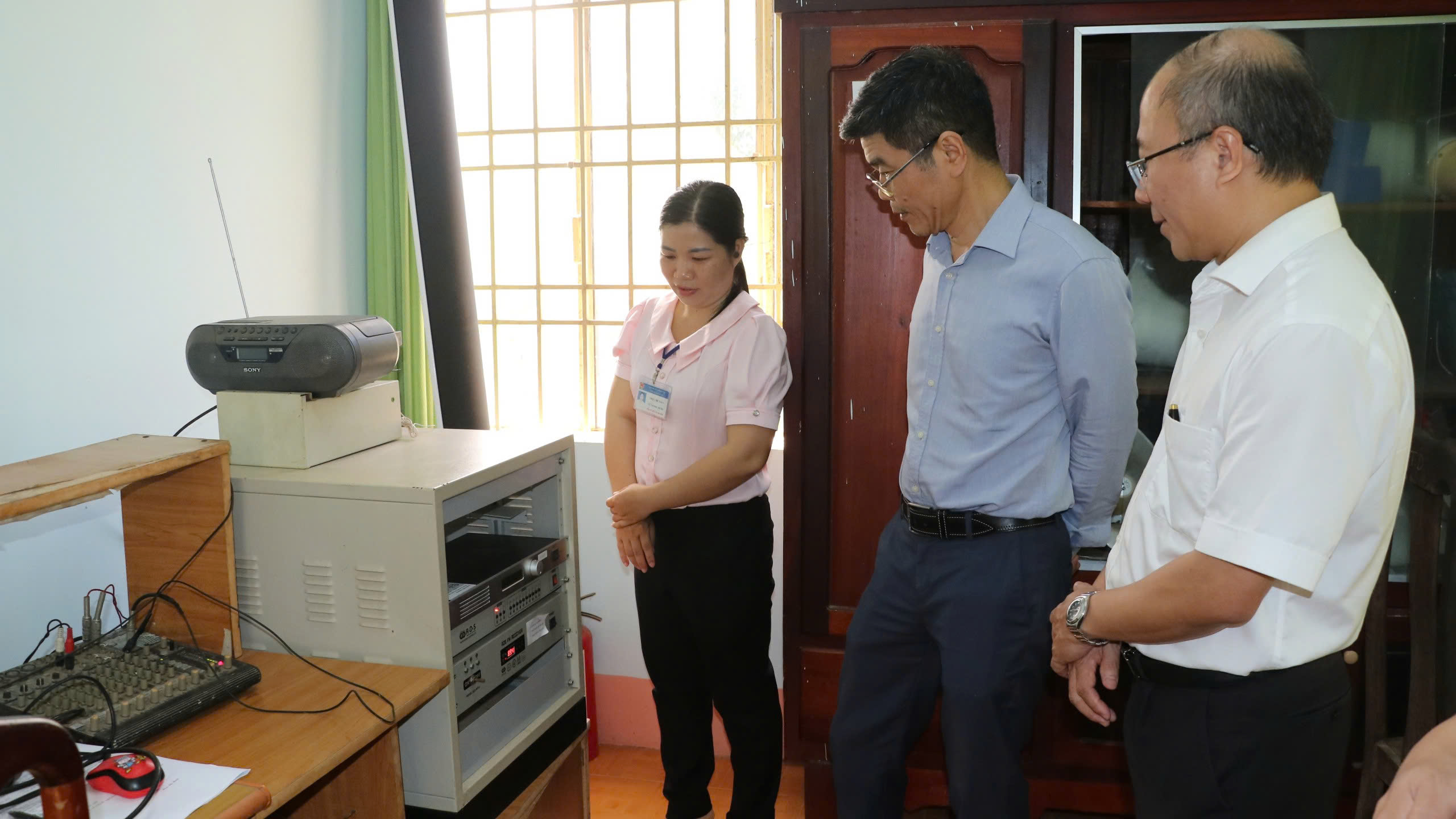 Đoàn kiểm tra tại Đài Truyền thanh và Truyền hình huyện
