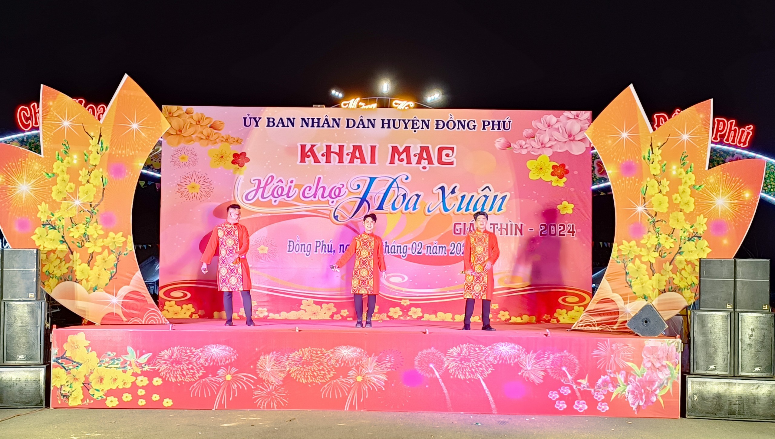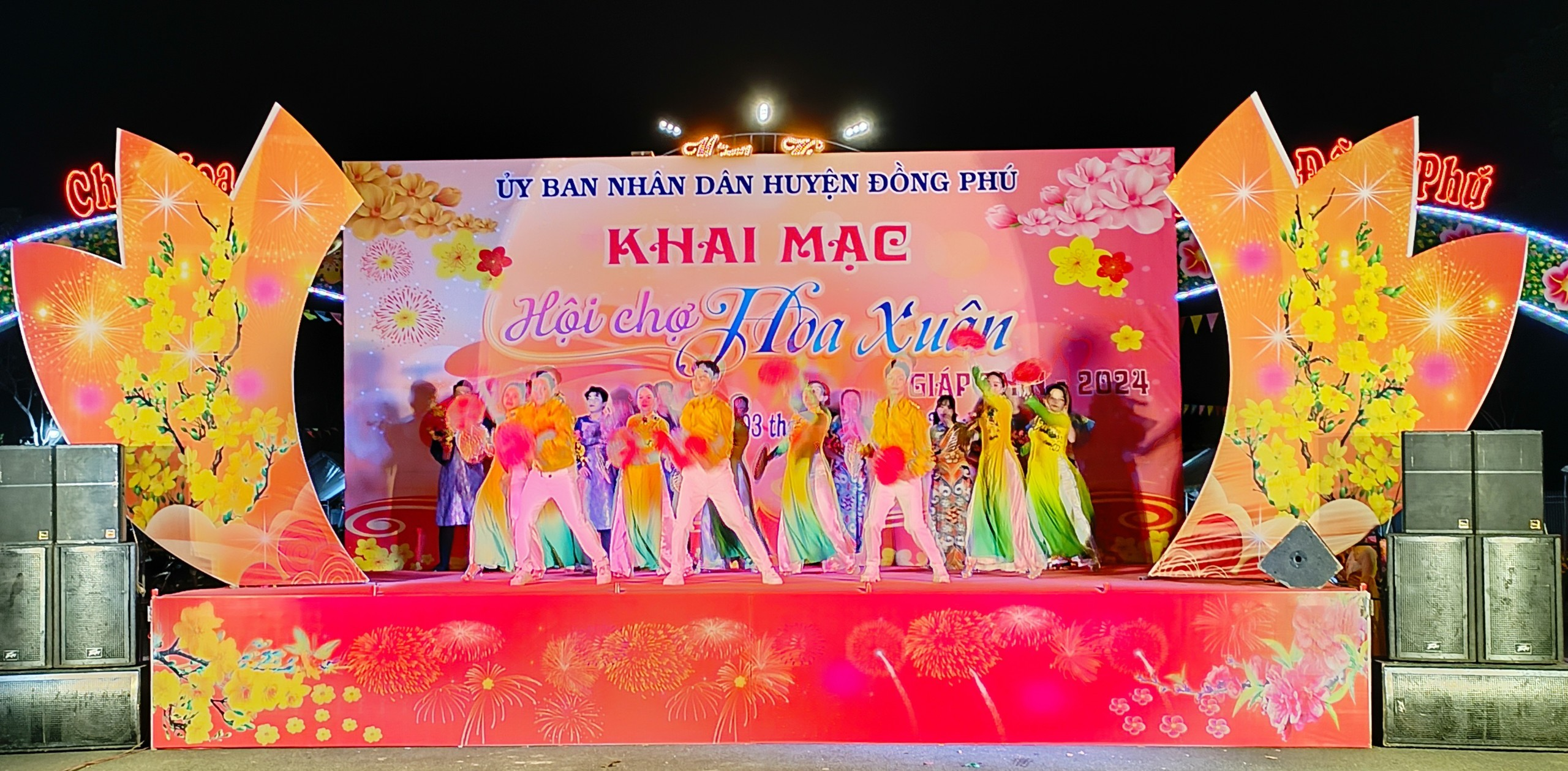 Tại lễ khai mạc, các đại biểu và người dân đã được thưởng thức chương trình văn nghệ do Trung tâm văn hóa-thể thao huyện Đồng Phú thực hiện, Ban tổ chức cũng thông qua Thể lệ tổ chức và cơ cấu giải thưởng Hội chợ Hoa xuân tết Nguyên đán Giáp Thìn 2024. Ban giám khảo sẽ chấm điểm các gian hàng đẹp, sản phẩm tham gia hội chợ xuất sắc để trao giải thưởng.