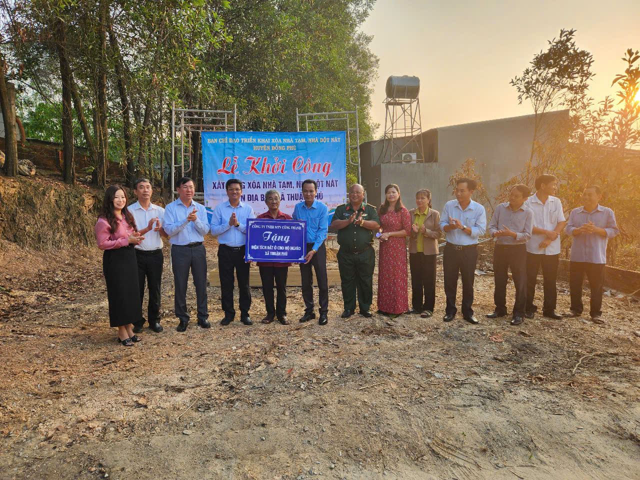 Tại buổi lễ, lãnh đạo UBND huyện Đồng Phú, lãnh đạo xã và nhà tài trợ đã thực hiện nghi thức khởi công xóa nhà tạm, nhà dột nát cho hộ ông Lê Quang Trung, thường trú ấp Thuận Hải, xã Thuận Phú và hộ ông Thạch Quốc Tuấn, ấp 2, xã Đồng Tâm.