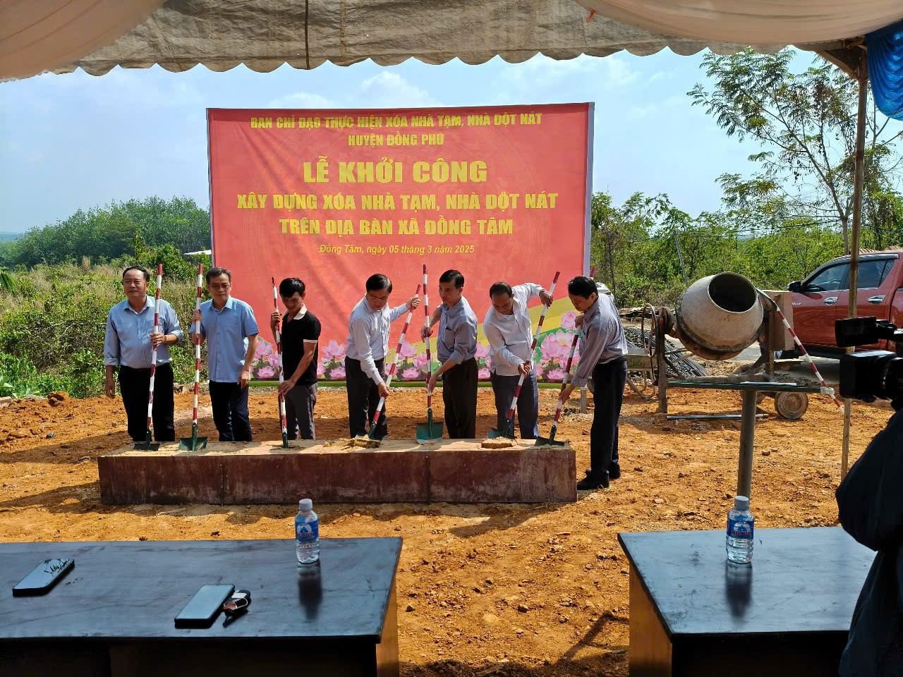 Ngày 05/3/2025, Ban Chỉ đạo xóa nhà tạm, nhà dột nát huyện Đồng Phú tổ chức Lễ phát động đồng loạt khởi công xoá nhà tạm, nhà dột nát trên địa bàn huyện và tổ chức khởi công xây dựng nhà mới cho hộ ông Lê Quang Trung, thường trú ấp Thuận Phú 1, xã Thuận Phú và hộ ông Thạch Quốc Tuấn, ấp 2, xã Đồng Tâm.