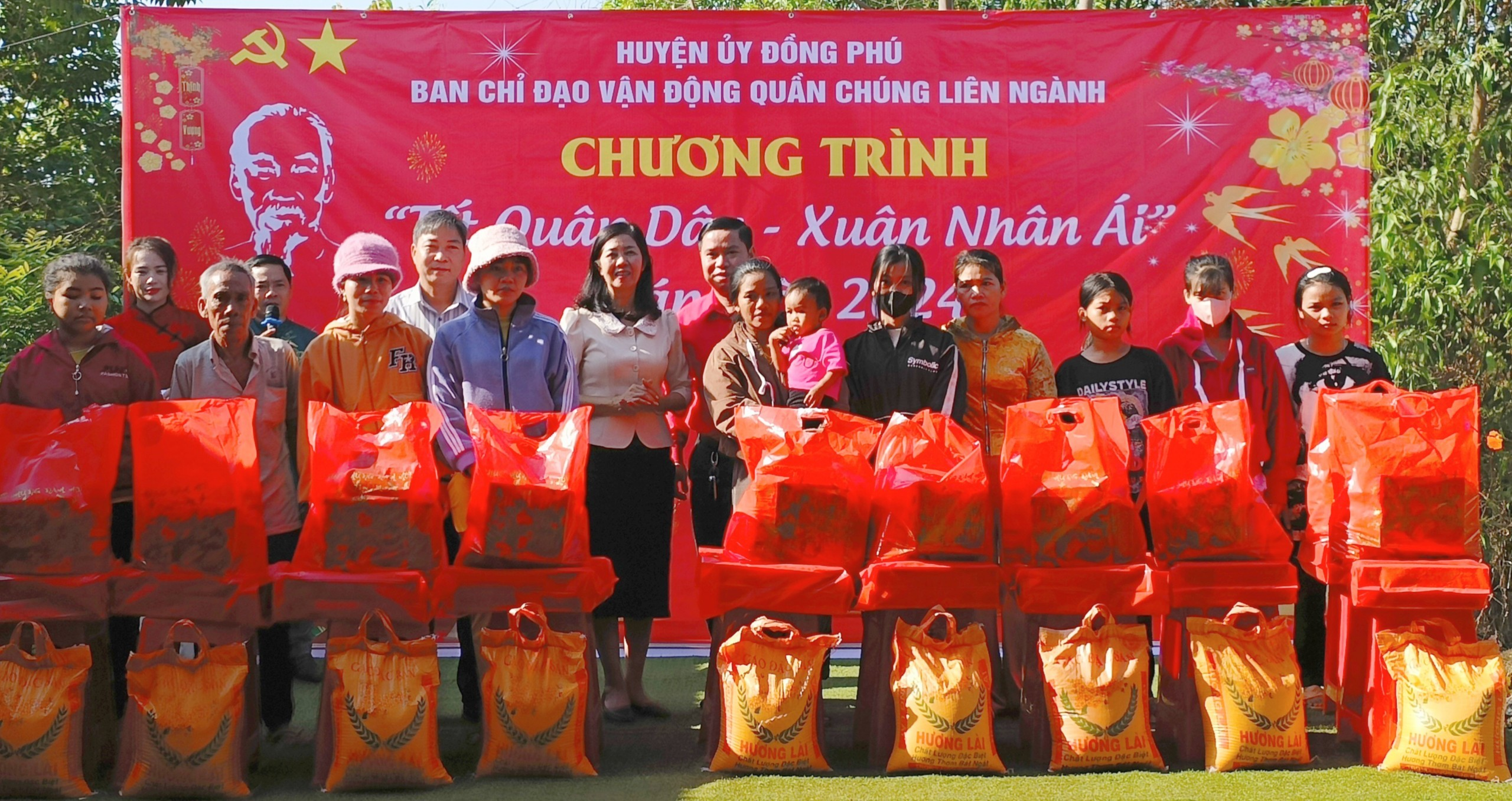 Nhân dịp tết cổ truyền dân tộc, Ban tổ chức tặng 200 phần quà cho hộ nghèo, khó khăn, hộ dân tộc thiểu số trên địa bàn xã Tân Lợi, mỗi phần bao gồm các nhu yếu phẩm như: Gạo, mỳ tôm, bột ngọt, dầu ăn, … , mỗi phần trị giá khoảng 650 ngàn đồng.