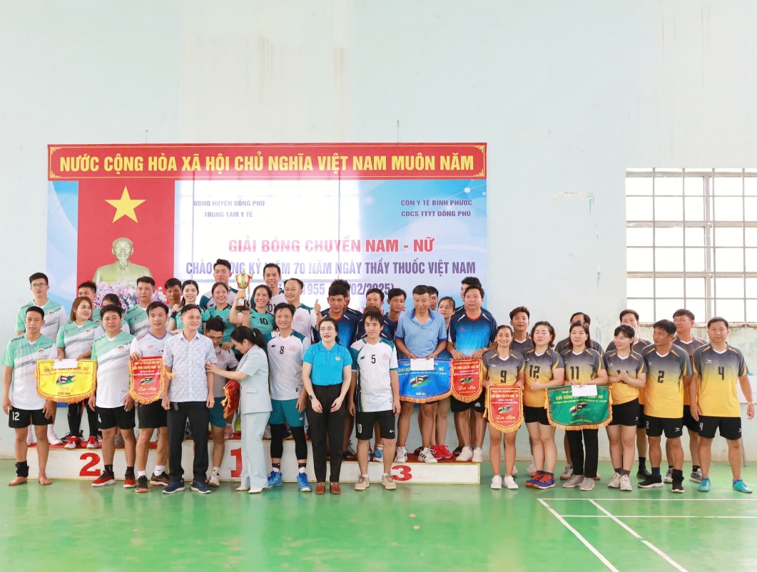 Sáng 22-2, Trung tâm y tế huyện Đồng Phú phối hợp với công đoàn ngành tổ chức giải bóng chuyền Nam - Nữ chào mừng kỷ niệm 70 năm ngày Thầy thuốc Việt Nam (27/02/1955 - 27/02/2025). 4 đội bóng chuyền của Trung tâm y tế các huyện: Bù Đốp, Bù Đăng, Bù Gia Mập và Đồng Phú đã tham dự giải.