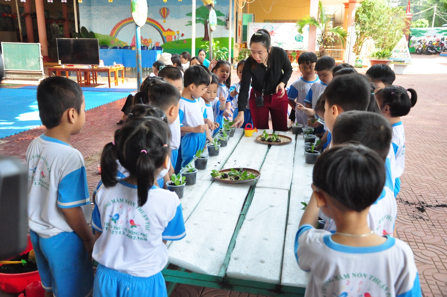 Sáng ngày 7-5, tại Trường mầm non Thuận Phú, Phòng GD&ĐT huyện Đồng Phú đã tổ chức Hội giảng giáo dục lấy trẻ làm trung tâm và giáo dục STEM để cán bộ, giáo viên các trường mầm non trên địa bàn tham quan, học tập kinh nghiệm.