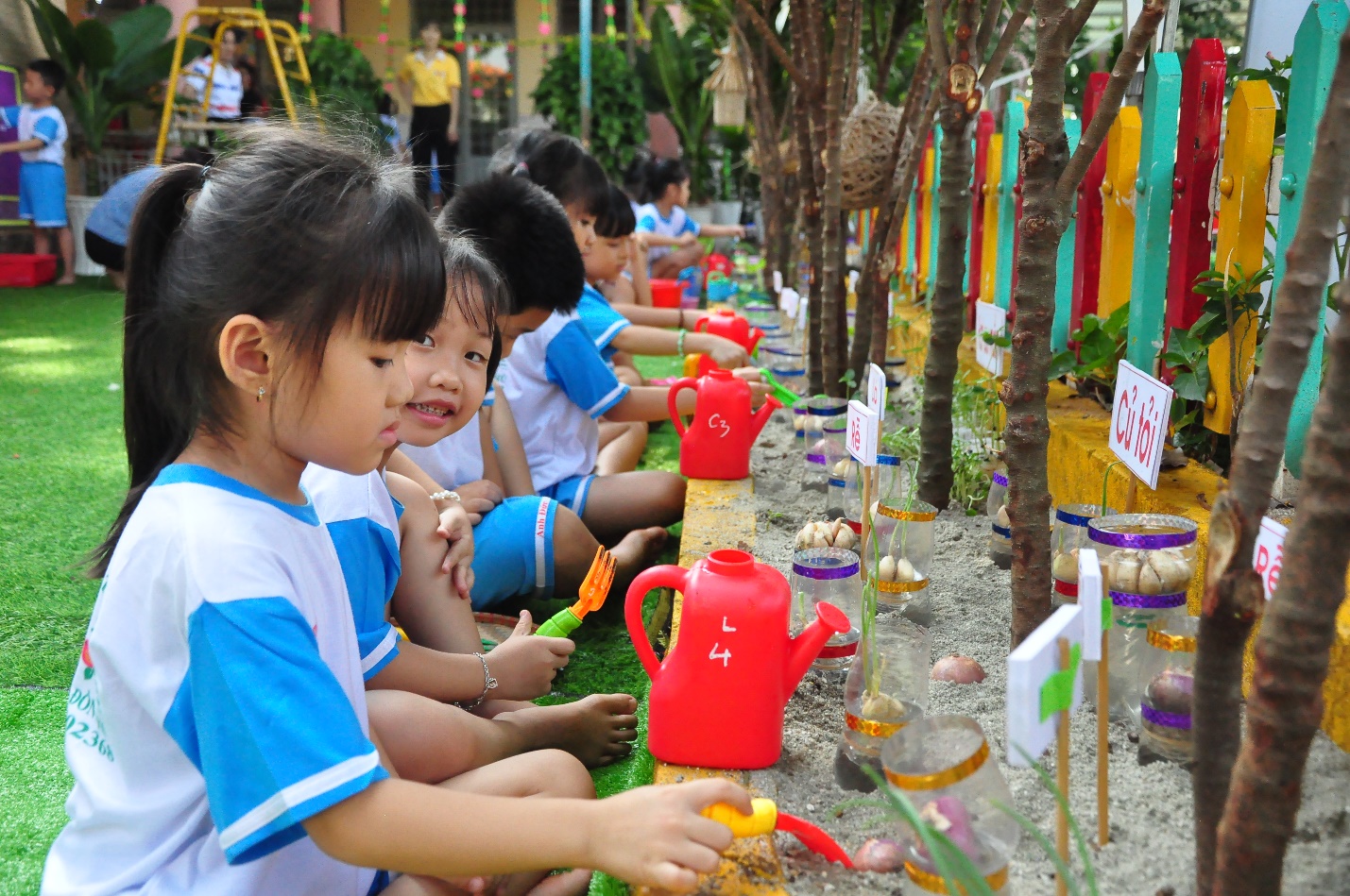 Trẻ tham gia hoạt động gieo hạt và chăm sóc cây