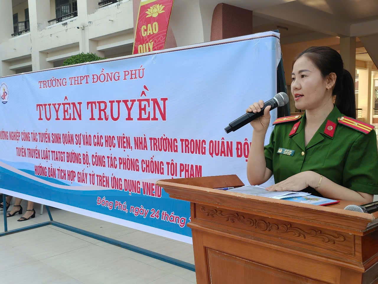 Tại trường THPT Đồng Phú, lãnh đạo Ban chỉ huy quân sự huyện Đồng Phú đã nêu bật vai trò, tầm quan trọng của Quân đội nhân dân Việt Nam đối với sự nghiệp xây dựng và bảo vệ tổ quốc. Năm 2025, cả nước có 17 học viện, nhà trường tuyển sinh đào tạo đại học, cao đẳng quân sự, đối tượng, hình thức, tiêu chuẩn tuyển sinh, các tổ hợp xét tuyển, hướng dẫn hồ sơ, thời gian tuyển sinh, ...