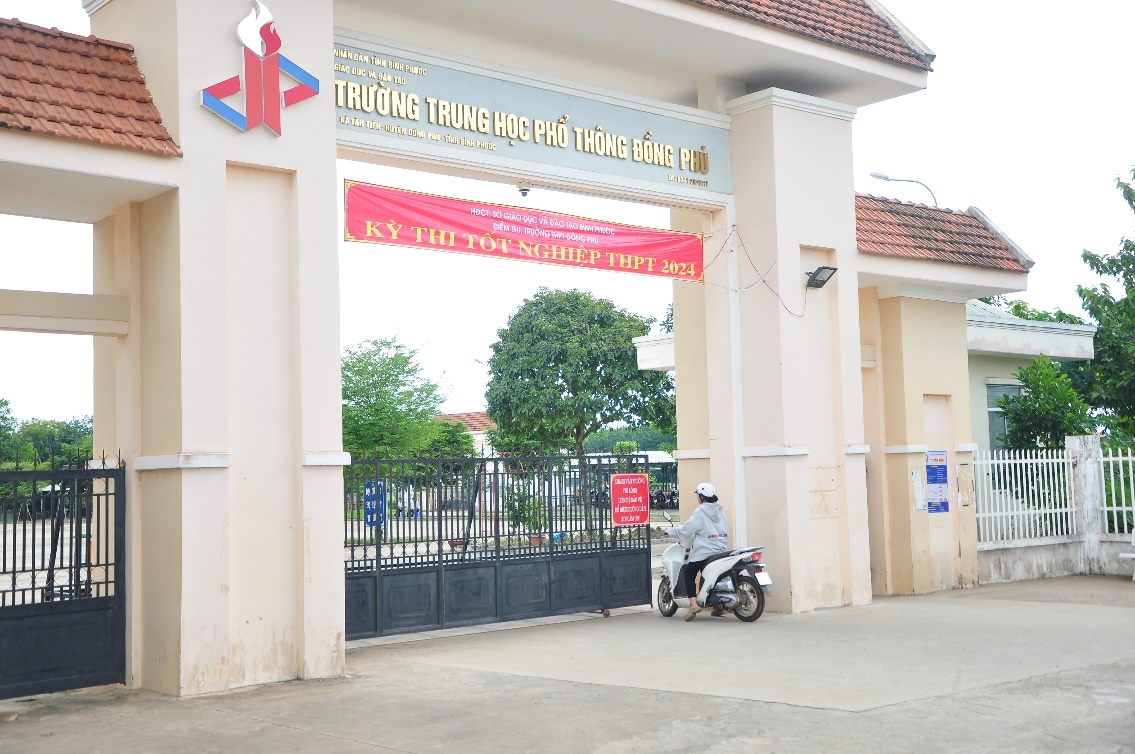 Ngày 27-6, cùng với hơn 1 triệu thí sinh trong cả nước, 406 thí sinh tại điểm thi Trường THPT Đồng Phú đã chính thức bước vào kỳ thi THPT năm 2024 với 2 môn thi văn và toán. Trong buổi sáng, các thí sinh thi môn Ngữ văn theo hình thức thi tự luận, thời gian làm bài 120 phút; buổi chiều thi môn toán theo hình thức trắc nghiệm, thời gian làm bài 90 phút. Điểm thi này ghi nhận không có trường hợp thí sinh và cán bộ coi thi vi phạm quy chế thi