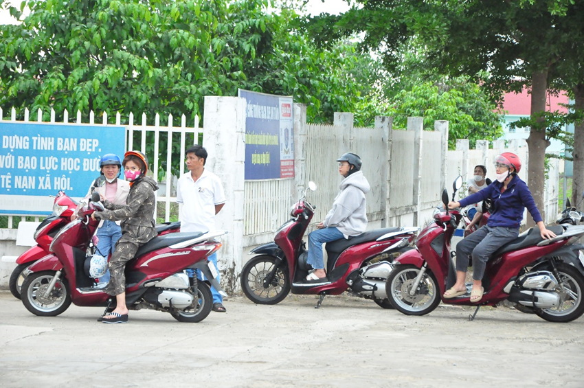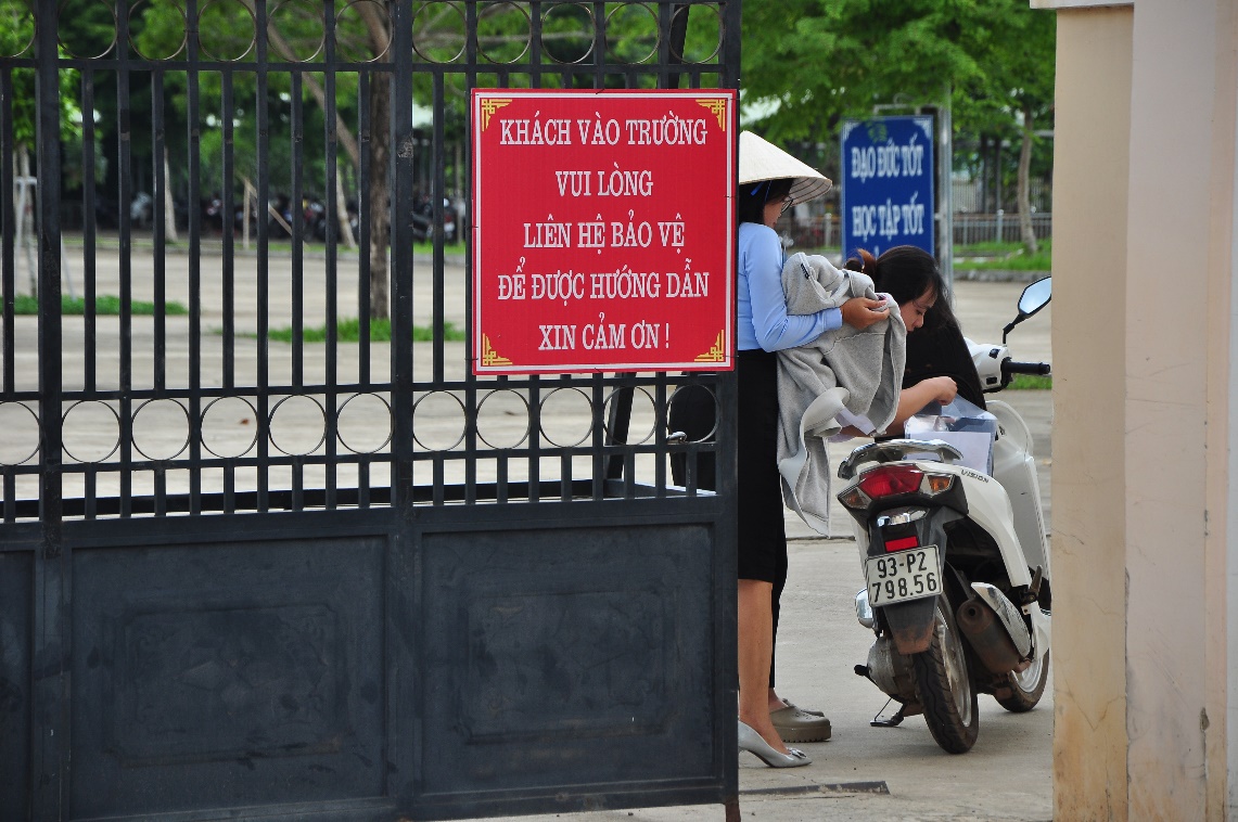 Nhiều phụ huy đứng ngoài ngóng chờ các sĩ tử, với hy vọng con em sẽ đạt kết quả tốt trong kỳ thi quan trọng này