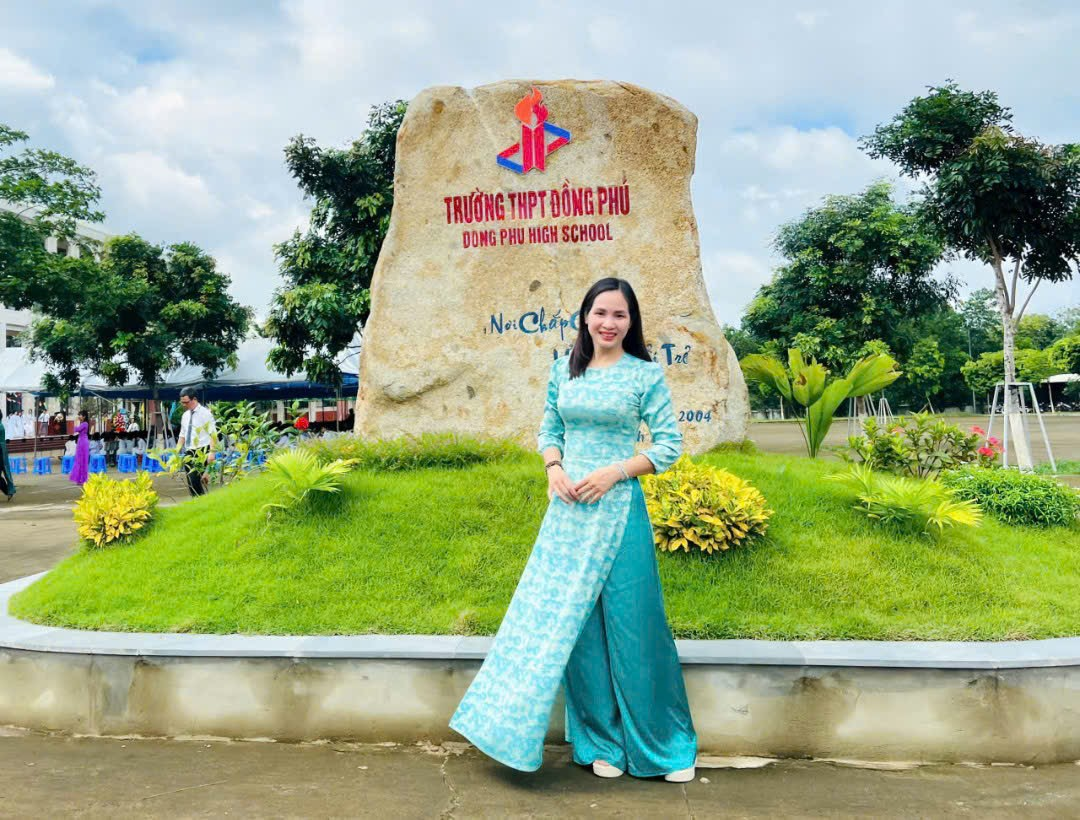 Cô Lê Thị Hải tại khuôn viên trường THPT Đồng Phú