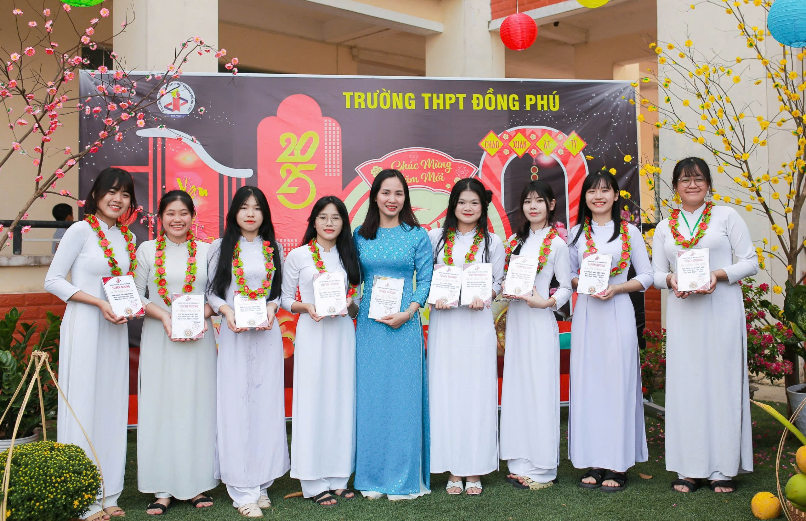 Cô Lê Thị Hải và đội tuyển học sinh giỏi cấp tỉnh môn Giáo dục kinh tế và pháp luật năm học 2024-2025, tại lễ tuyên dương do Trường THPT Đồng Phú tổ chức