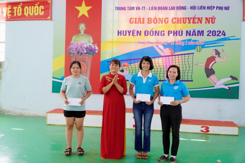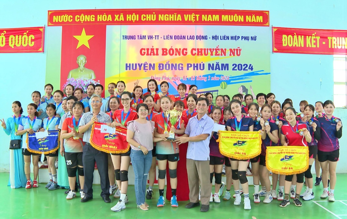 Giải bóng chuyền nữ huyện Đồng Phú năm 2024 do Trung tâm Văn hoá - Thể thao, Liên đoàn lao động, Hội Liên hiệp phụ nữ huyện tổ chức. Giải diễn ra trong 3 ngày, từ ngày 1 đến ngày 3-3, quy tụ hơn 140 vận động viên đến từ 12 đội bóng chuyền trong huyện tranh tài. Các đội được chia làm 4 bảng, thi đấu vòng tròn một lượt chọn 2 đội nhất, nhì mỗi bảng vào tứ kết. Từ vòng tứ kết đấu loại trực tiếp chọn đội thắng vào bán kết, chung kết.