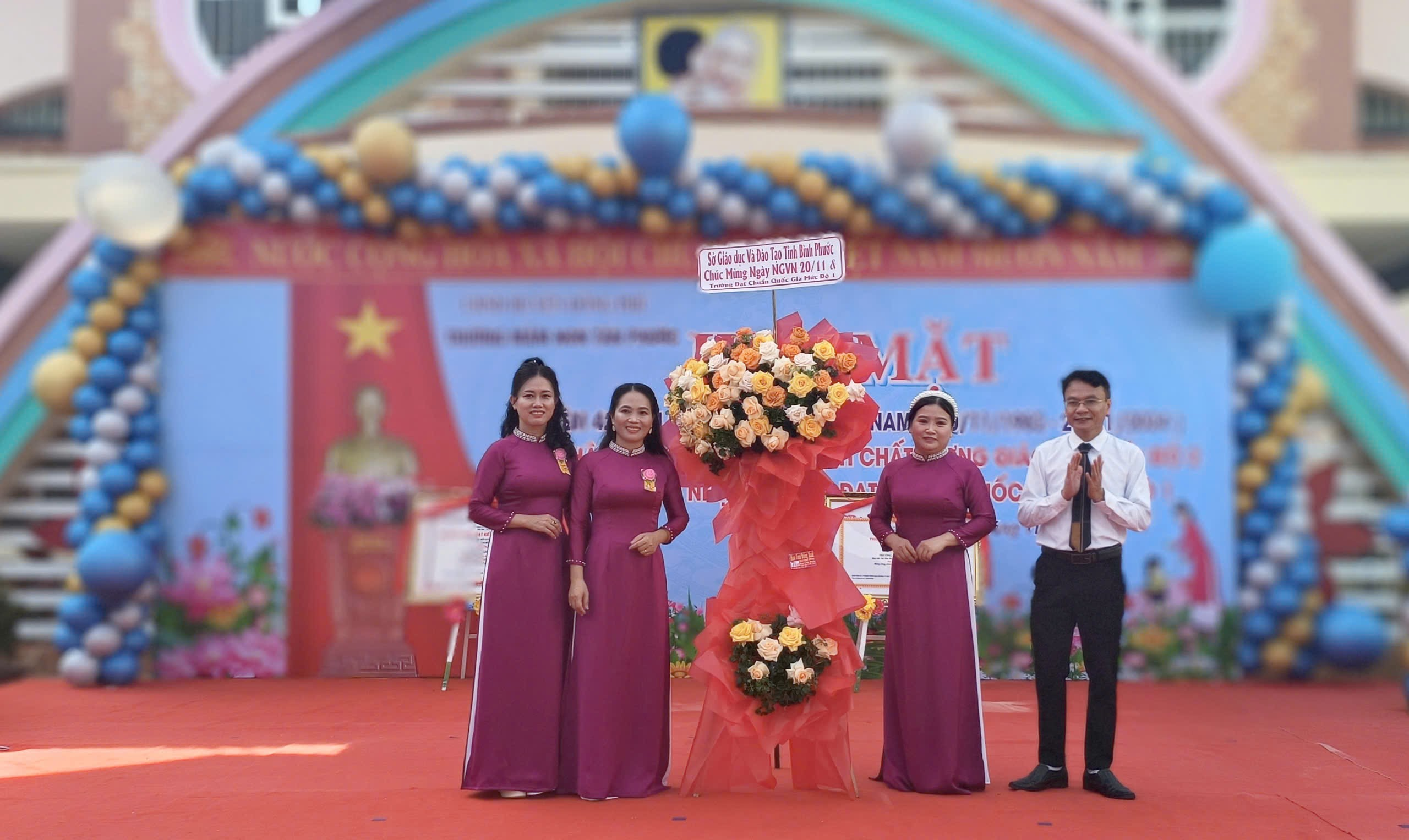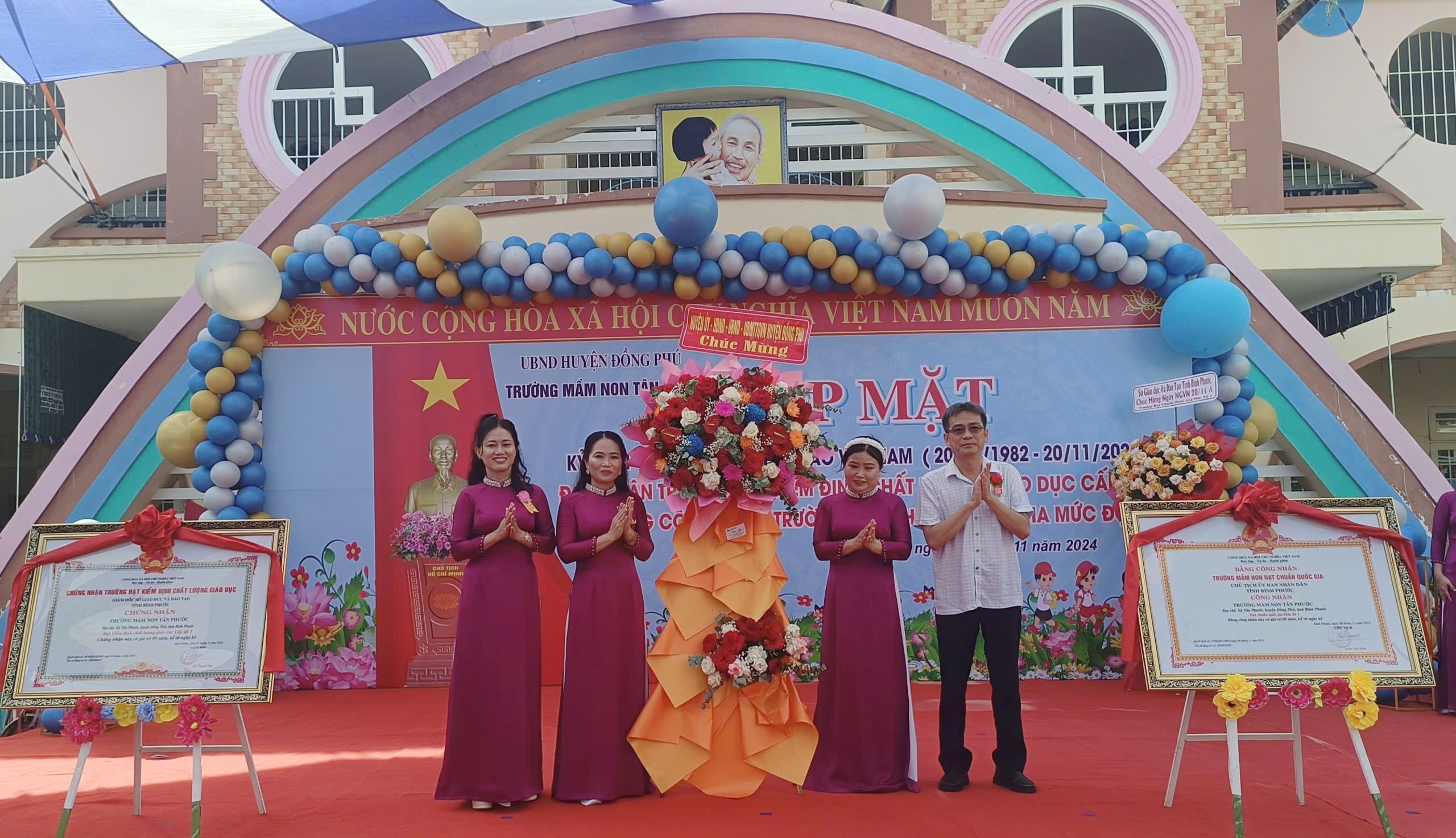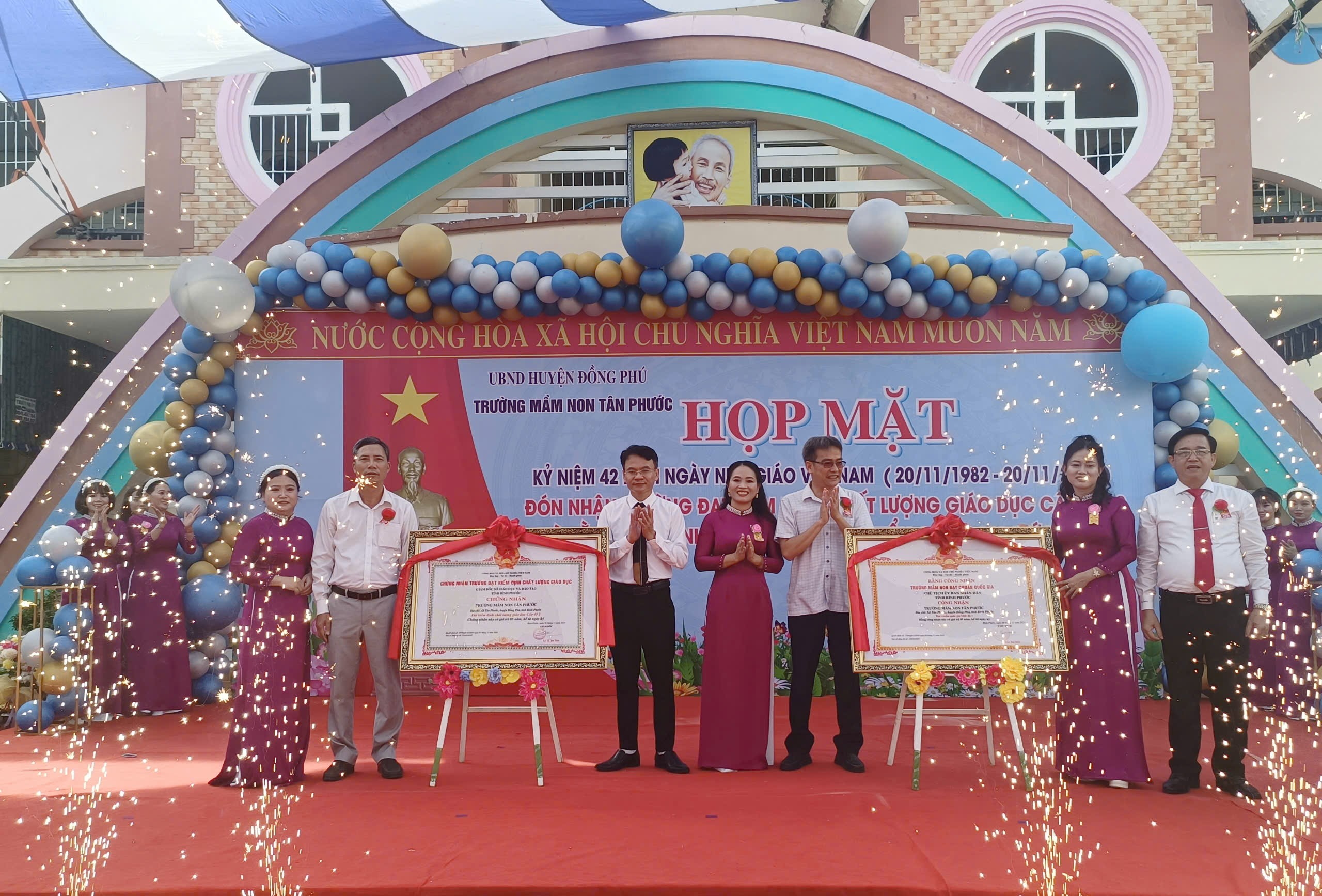 Tại buổi lễ, lãnh đạo Sở Giáo dục và đào tạo tỉnh, huyện Đồng Phú đã trao Bằng công nhận Trường mầm non Tân Phước đạt chuẩn Quốc gia Mức độ 1 và chứng nhận Trường đạt kiểm định chất lượng giáo dục Cấp độ 2.