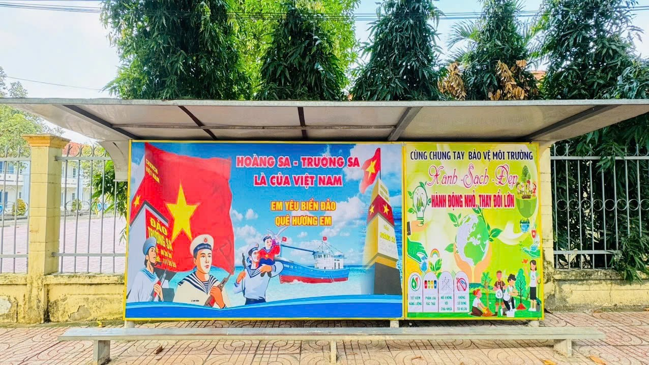 Chuẩn bị năm học mới, nhà trường đã lắp đặt các pano tuyên truyền trong khuôn viên trường và khu vực lân cận