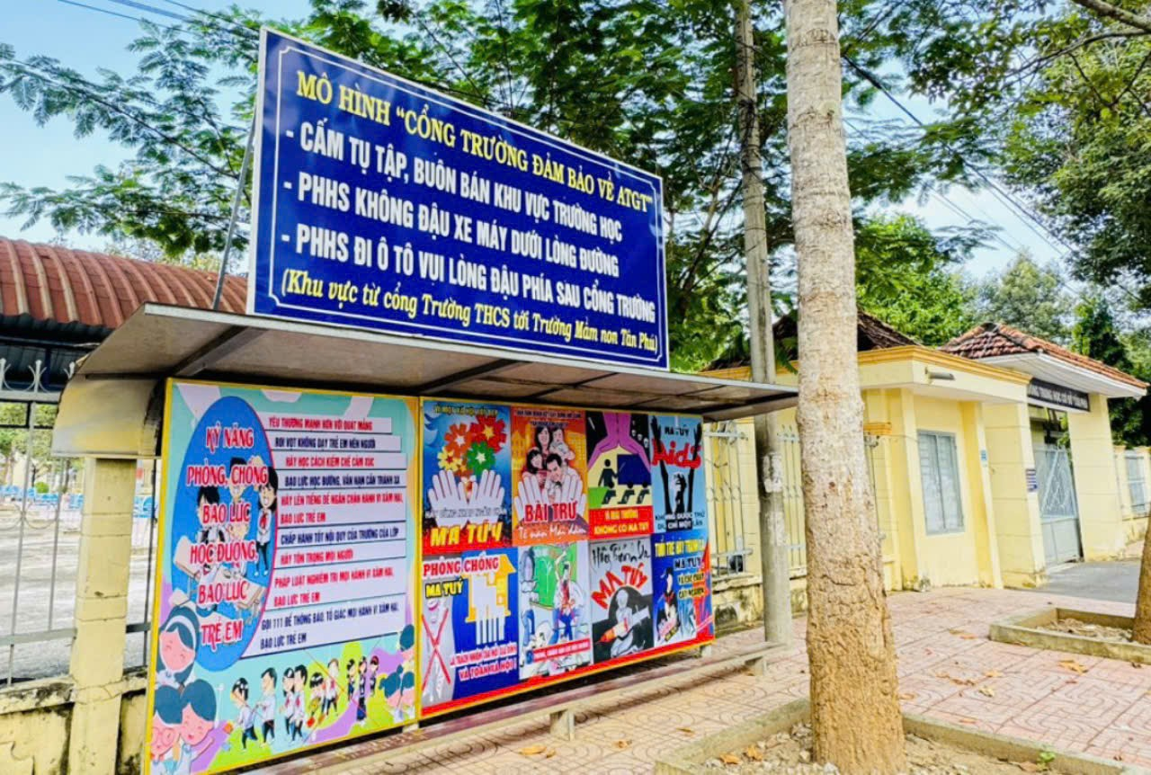 Ðể bảo đảm cơ sở vật chất, nhà trường thực hiện chỉnh trang khuôn viên, sửa chữa, xây mới cơ sở vật chất, bổ sung thiết bị đồ dùng còn thiếu phục vụ công tác giảng dạy và học tập, như: sửa chữa bàn ghế, hệ thống điện nước, tổng vệ sinh môi trường trong và ngoài lớp học, cắt tỉa cành cây, bổ sung bảng biểu tuyên truyền, … Đặc biệt, trường tăng cường công tác tuyên truyền, vận động trên hệ thống phát thanh địa phương, thành lập các tổ, nhóm zalo,… cập nhật các văn bản chỉ đạo của cấp trên, ngành giáo dục, Ban giám hiệu nhà trường, đoàn thể, … để cán bộ, giáo viên, nhân viên, phụ huynh, học sinh biết và thực hiện. Trường còn phối hợp UBND thị trấn Tân Phú trao tặng 25 phần quà, trị giá 25 triệu đồng cho học sinh khó khăn. Chuẩn bị cho ngày khai trường, Ban giám hiệu nhà trường hướng dẫn, tạo điều kiện cho giáo viên đẩy mạnh công tác tuyên truyền, vận động để phụ huynh và học sinh thực hiện an toàn giao thông, phòng chống dịch bệnh, bạo lực học đường, tai nạn thương tích, …