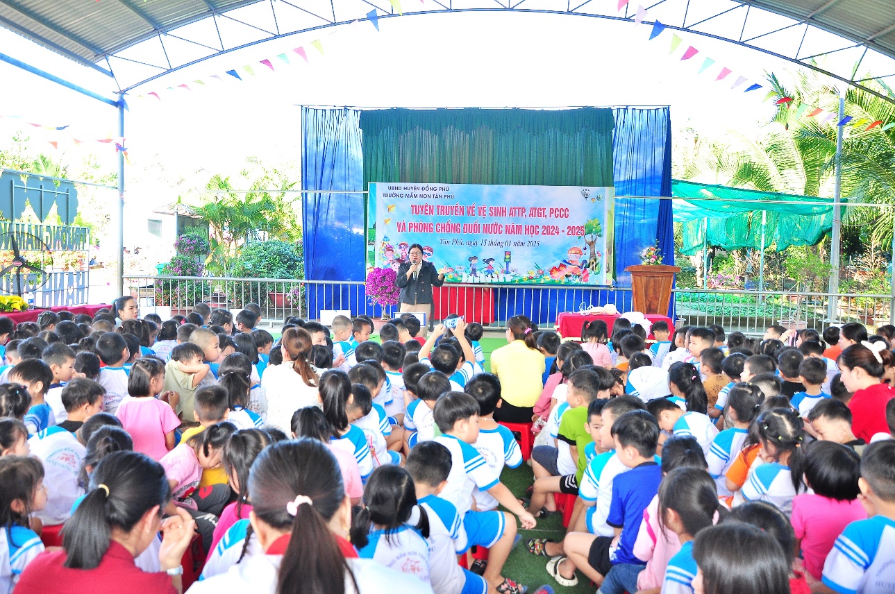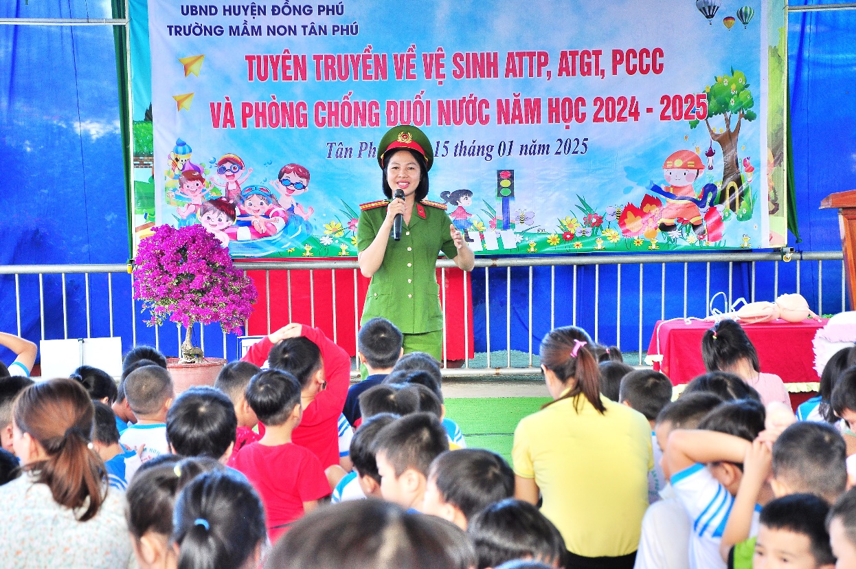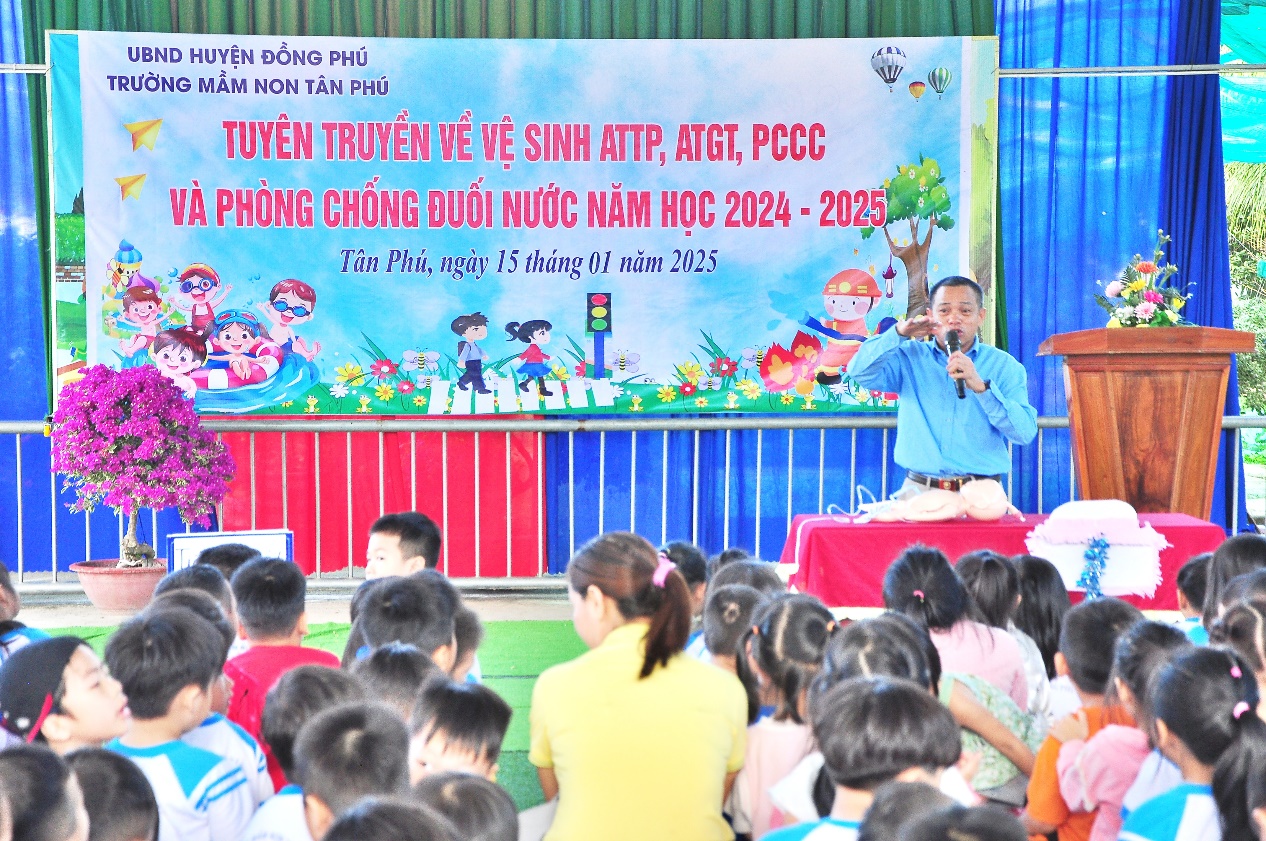 Tại buổi tuyên truyền, giáo viên và học sinh được cán bộ Trung tâm y tế huyện và Công an thị trấn Tân Phú phổ biển các quy định của pháp luật liên quan đến lĩnh vực giao thông đường bộ; kỹ năng xử lý các tình huống trong quá trình tham gia giao thông; dấu hiệu nhận biết thực phẩm không an toàn; phương pháp bảo quản thực phẩm an toàn; các quy định của pháp luật về xử lý vi phạm ATTP; tuyên truyền kiến thức pháp luật về PCCC, kỹ năng xử lý các tình huống cháy, nổ và kỹ năng thoát nạn khi xảy ra cháy nổ. Ngoài ra, giáo viên và học sinh còn được tìm hiểu về nguyên nhân và các biện pháp phòng chống tai nạn đuối nước; biện pháp ứng cứu, sơ cứu khi gặp người bị tai nạn đuối nước …