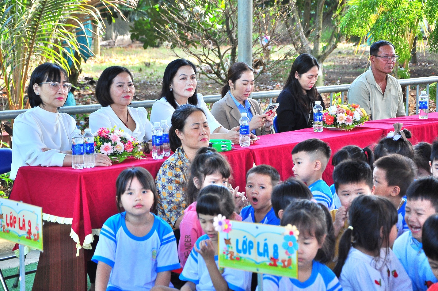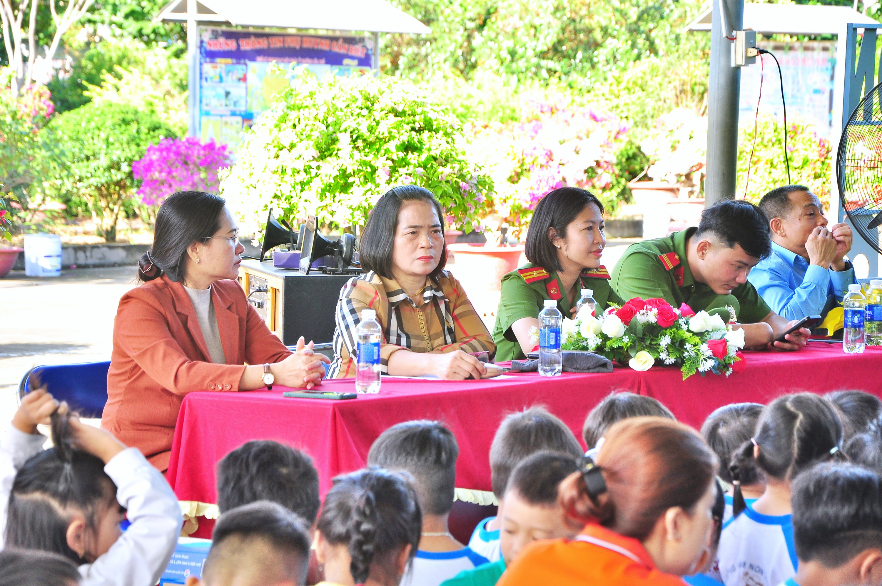 Đại diện Phòng giáo dục - đào tạo huyện, hội cha mẹ học sinh cùng Ban giám hiệu, giáo viên của trường dự buổi tuyên truyền