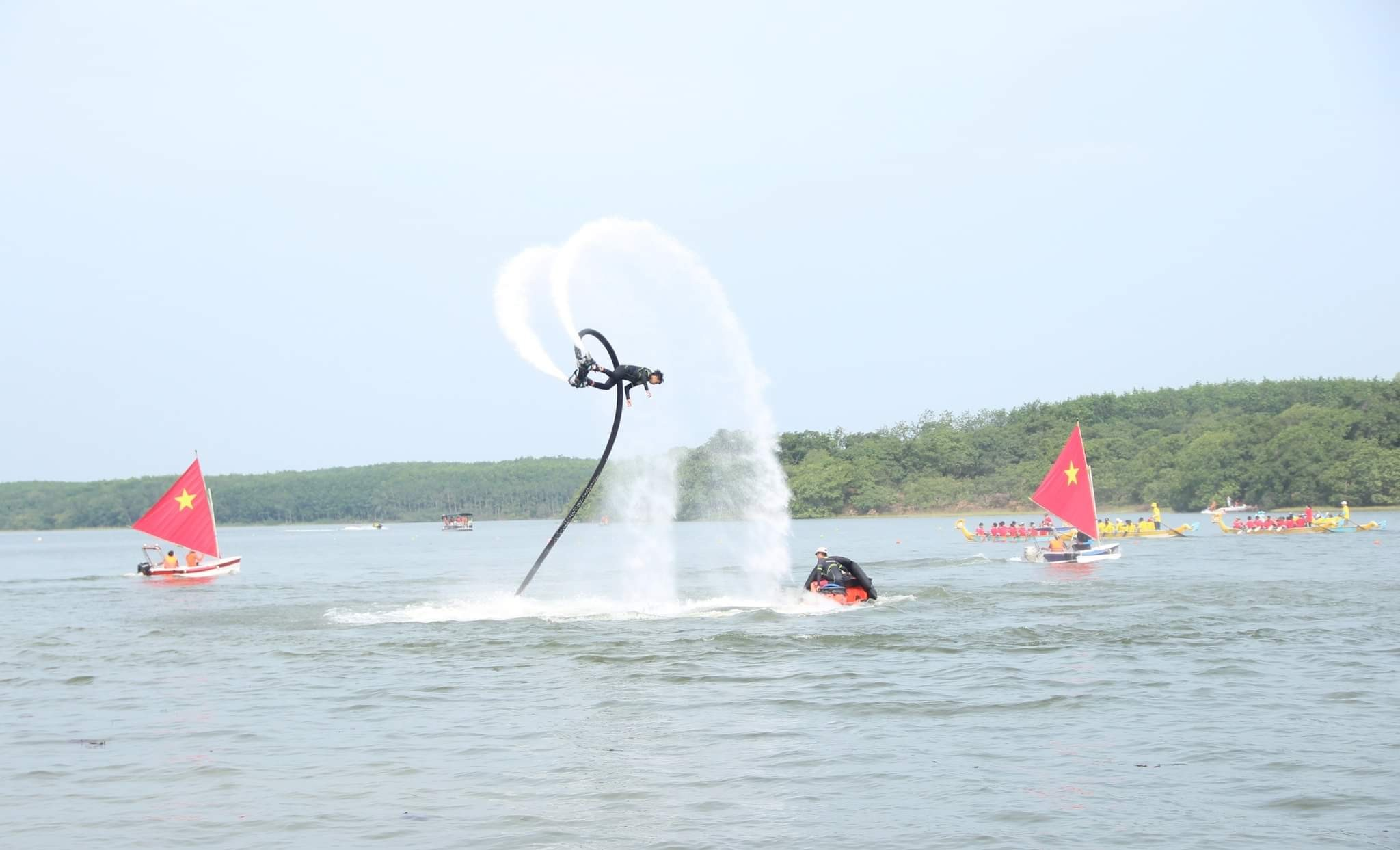 Mặt nước Hồ Suối Giai trong xanh, đẹp phù hợp tổ chức các trò chơi dưới nước