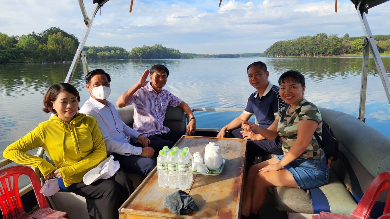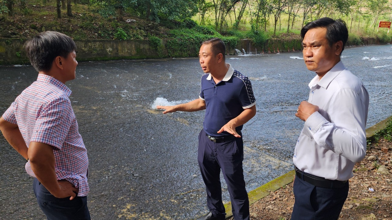 Đoàn khảo sát mặt nước hồ Suối Giai