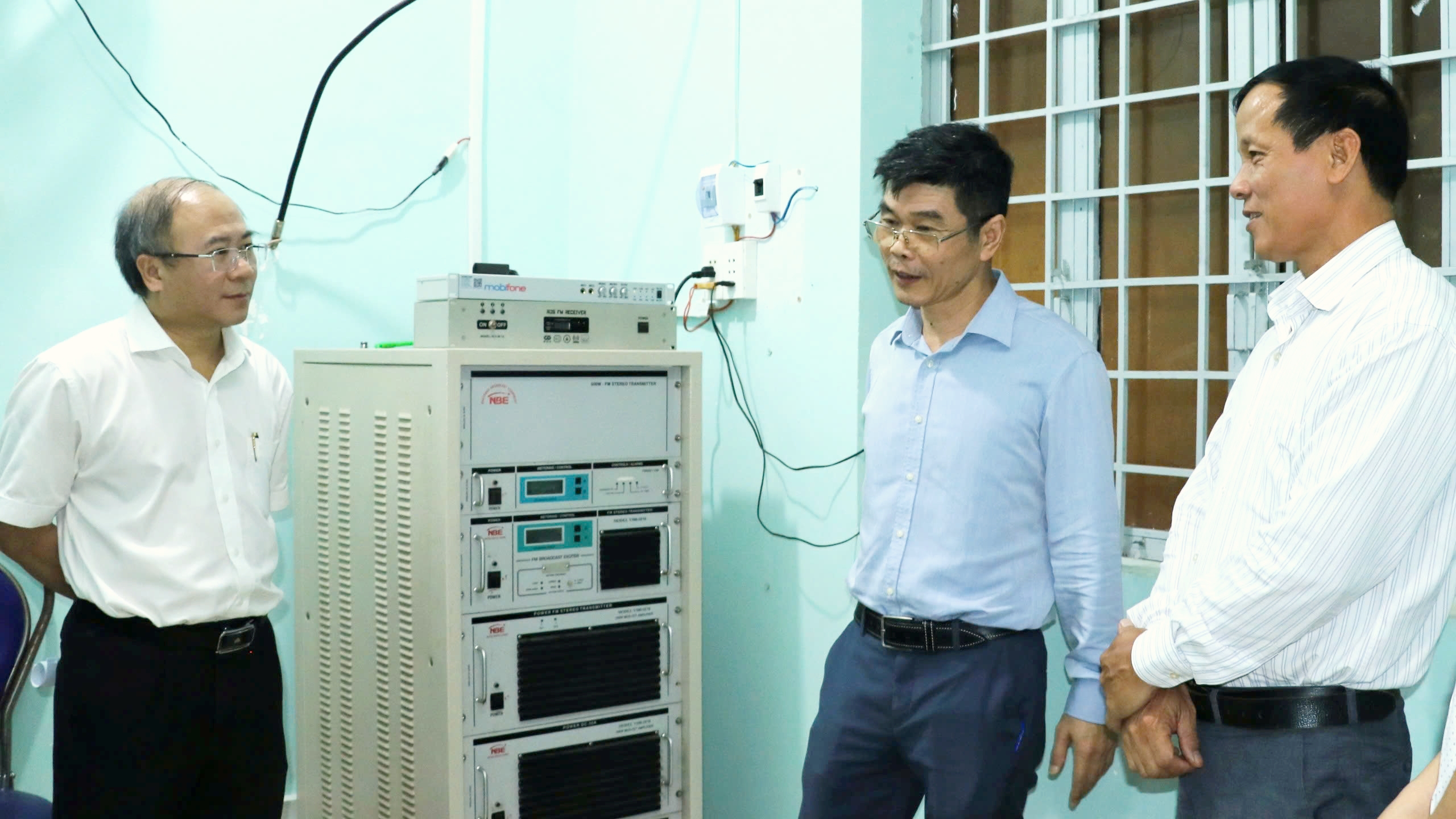 Đoàn kiểm tra tại Đài Truyền thanh và Truyền hình huyện