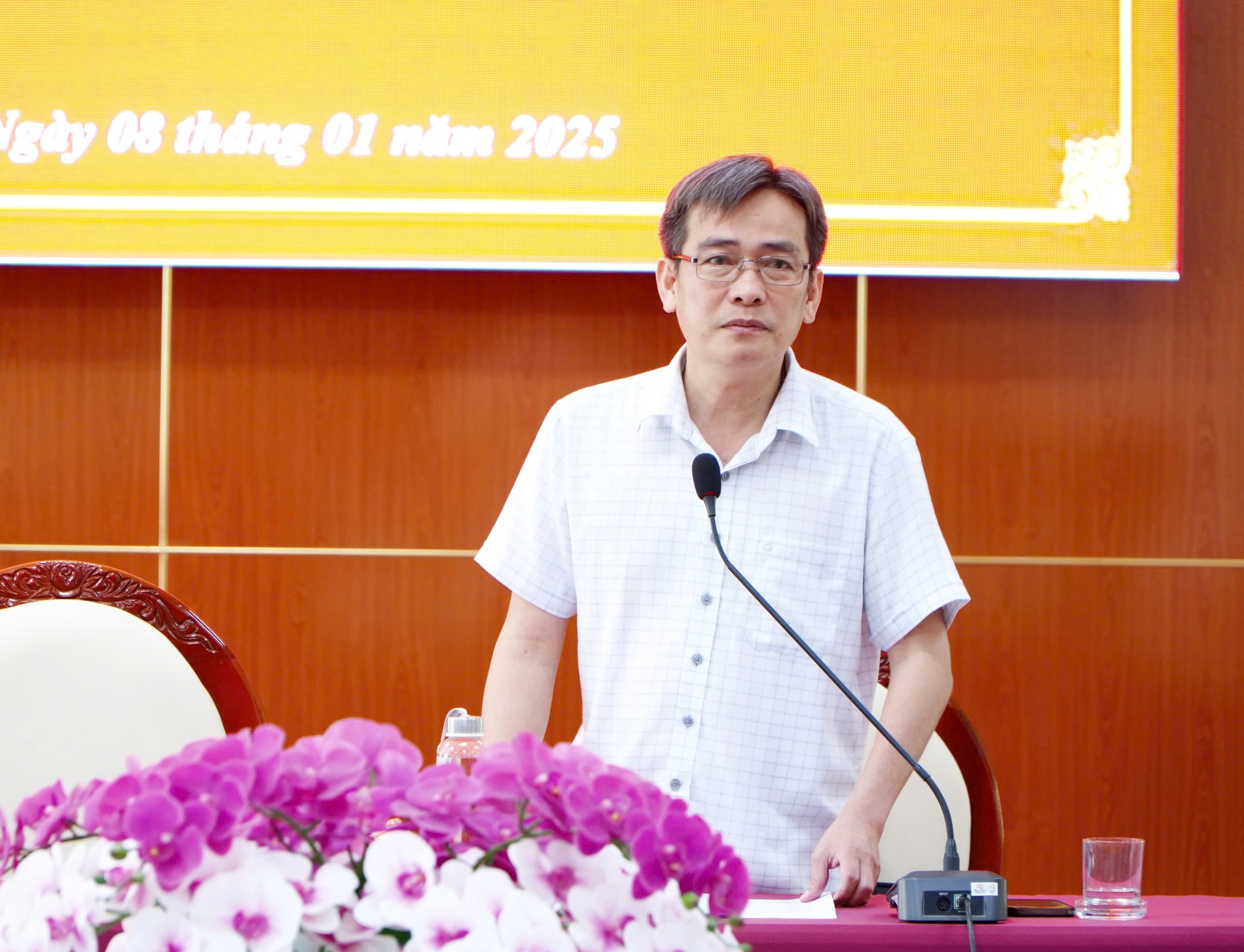 Uỷ viên Ban Thường vụ Hyện uỷ, Phó Chủ tịch UBND huyện Nguyễn Thanh Phương phát biểu tại hội nghị